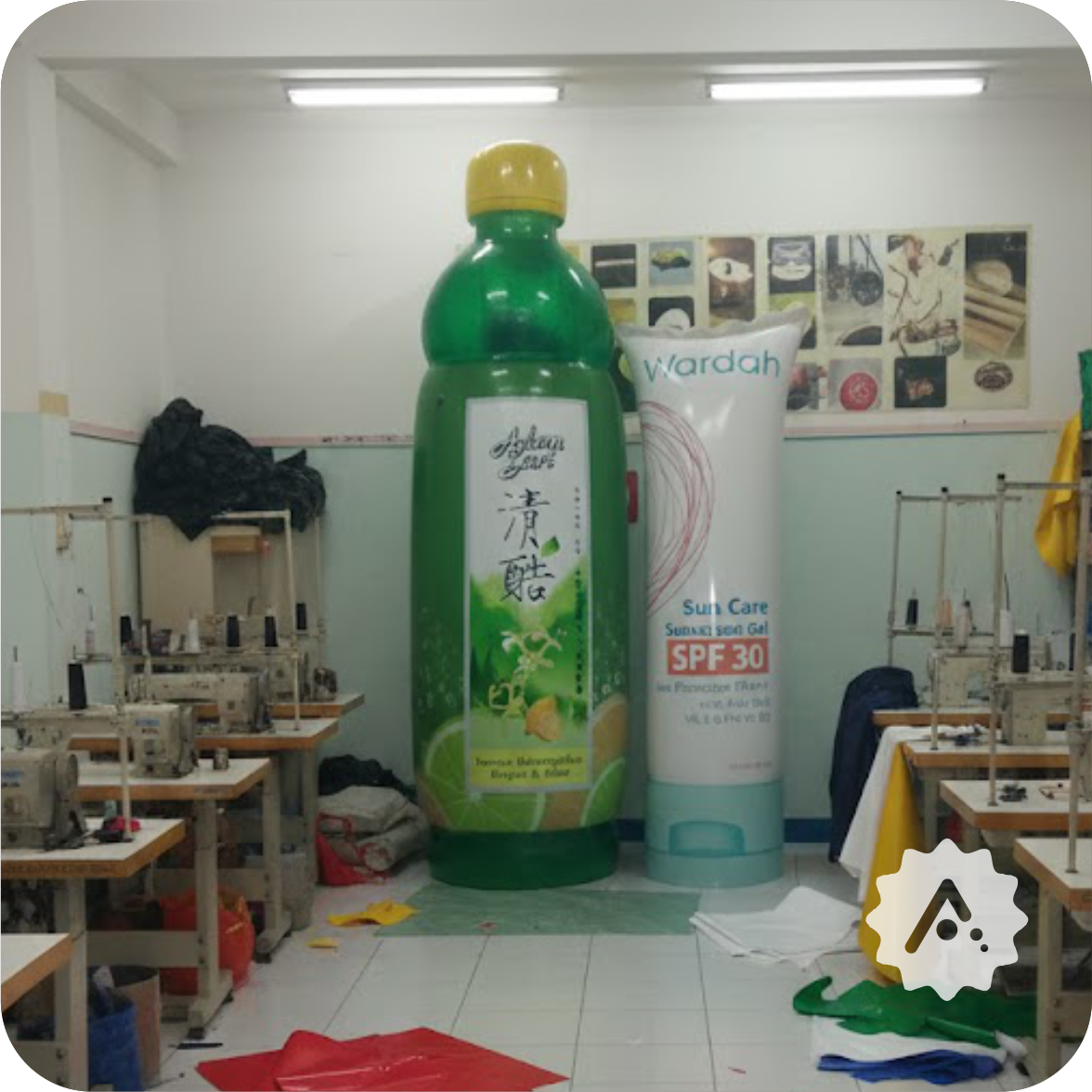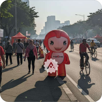 Balon dibuat dengan bentuk khusus seperti maskot, produk, atau karakter tertentu yang menggambarkan identitas brand.