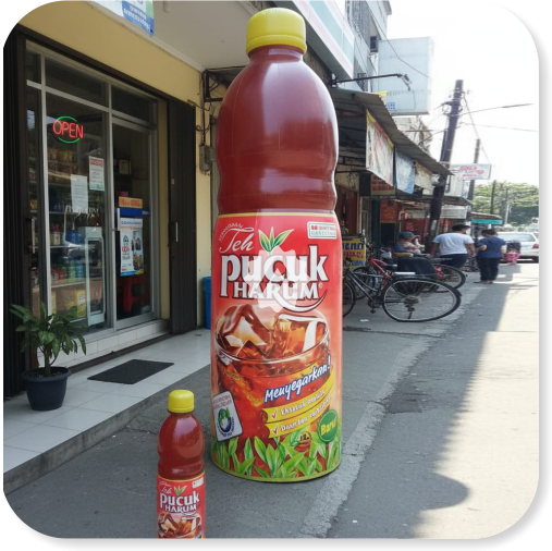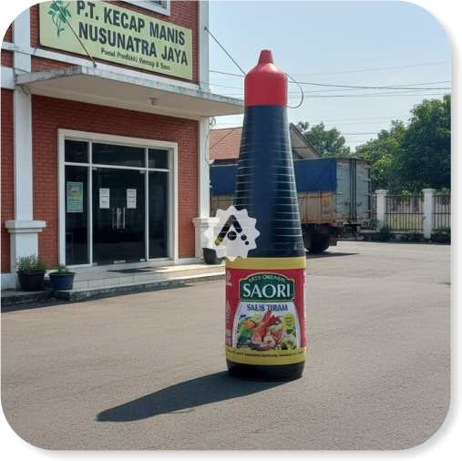 Dengan bentuk yang menyerupai produk asli, balon ini mampu memberikan kesan visual yang kuat sehingga mudah diingat oleh konsumen.